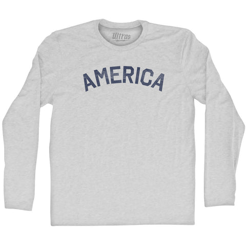 Product Story: America Adult Tri-Blend Long Sleeve T-shirtProduct Description: America Adult Tri-Blend Long Sleeve T-shirt Tri-Blend (Polyester, Rayon, Cotton) Buttery Smooth Soft Material Medium Weight Tee Soft Hand Print