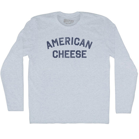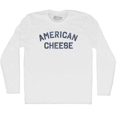 Product Story: American Cheese Adult Cotton Long Sleeve T-shirtProduct Description: American Cheese Adult Cotton Long Sleeve T-shirt Cotton Buttery Smooth Soft Material Medium Weight Tee Soft Hand Print