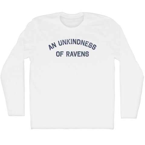 Product Story: An Unkindness Of Ravens Adult Cotton Long Sleeve T-shirtProduct Description: An Unkindness Of Ravens Adult Cotton Long Sleeve T-shirt Cotton Buttery Smooth Soft Material Medium Weight Tee Soft Hand Print