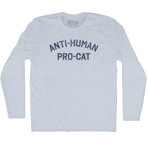 Product Story: Anti-Human Pro-Cat Adult Tri-Blend Long Sleeve T-shirtProduct Description: Anti-Human Pro-Cat Adult Tri-Blend Long Sleeve T-shirt Tri-Blend (Polyester, Rayon, Cotton) Buttery Smooth Soft Material Medium Weight Tee Soft Hand Print