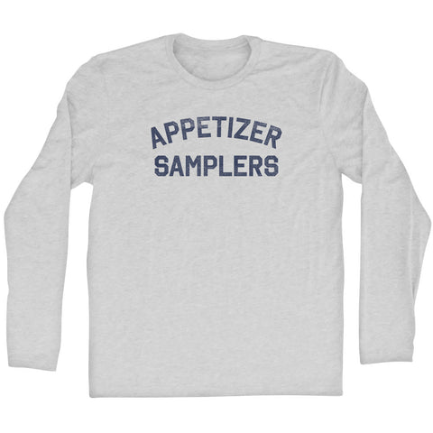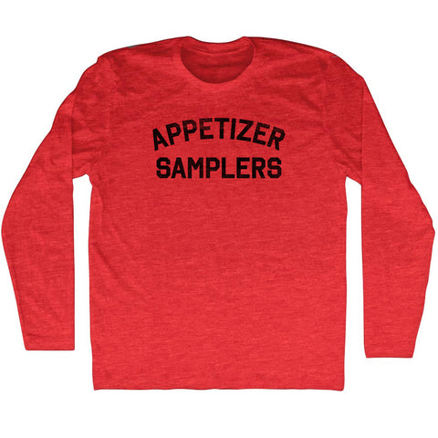 Product Story: Appetizer Samplers Adult Tri-Blend Long Sleeve T-ShirtProduct Description: Appetizer Samplers Adult Tri-Blend Long Sleeve T-Shirt Tri-Blend (Polyester, Rayon, Cotton) Buttery Smooth Soft Material Medium Weight Tee Soft Hand Print