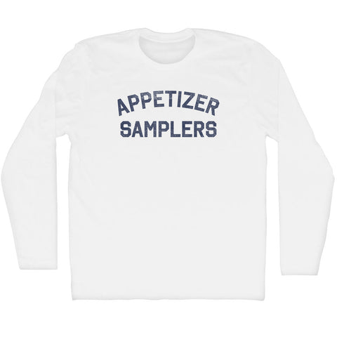 Product Story: Appetizer Samplers Adult Cotton Long Sleeve T-ShirtProduct Description: Appetizer Samplers Adult Cotton Long Sleeve T-Shirt Cotton Buttery Smooth Soft Material Medium Weight Tee Soft Hand Print