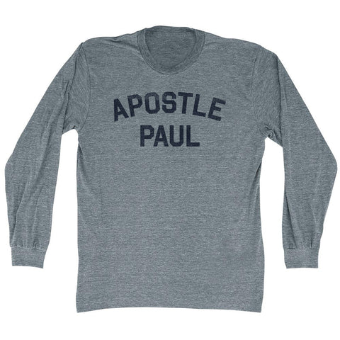 Product Story: Apostle Paul Adult Tri-Blend Long Sleeve T-shirtProduct Description: Apostle Paul Adult Tri-Blend Long Sleeve T-shirt Tri-Blend (Polyester, Rayon, Cotton) Buttery Smooth Soft Material Medium Weight Tee Soft Hand Print