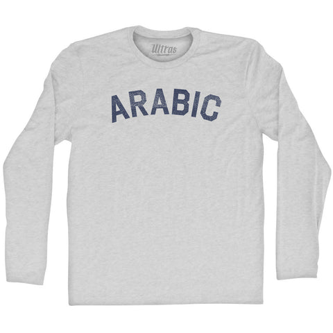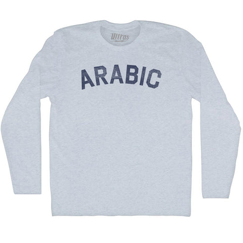 Product Story: Arabic Adult Tri-Blend Long Sleeve T-shirtProduct Description: Arabic Adult Tri-Blend Long Sleeve T-shirt Tri-Blend (Polyester, Rayon, Cotton) Buttery Smooth Soft Material Medium Weight Tee Soft Hand Print