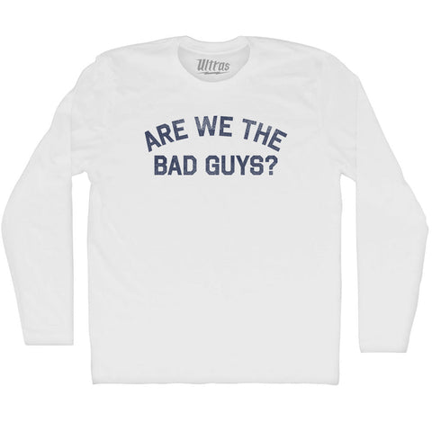 Product Story: Are We The Bad Guys Adult Cotton Long Sleeve T-shirtProduct Description: Are We The Bad Guys Adult Cotton Long Sleeve T-shirt Cotton (90% Cotton &10% Polyester) Buttery Smooth Soft Material Medium Weight Tee Soft Hand Print