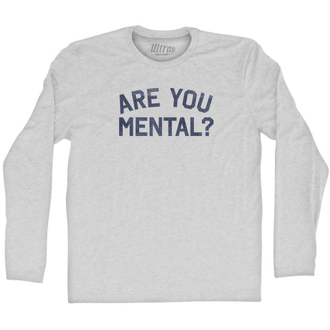Product Story: Are You Mental Adult Tri-Blend Long Sleeve T-shirtProduct Description: Are You Mental Adult Tri-Blend Long Sleeve T-shirt Tri-Blend (Polyester, Rayon, Cotton) Buttery Smooth Soft Material Medium Weight Tee Soft Hand Print