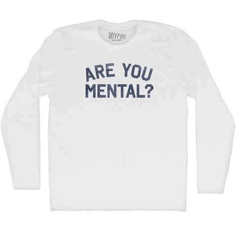 Product Story: Are You Mental Adult Cotton Long Sleeve T-shirtProduct Description: Are You Mental Adult Cotton Long Sleeve T-shirt Cotton (90% Cotton &10% Polyester) Buttery Smooth Soft Material Medium Weight Tee Soft Hand Print