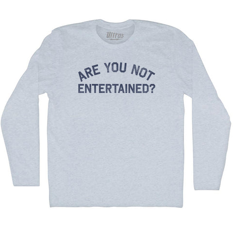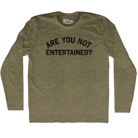 Product Story: Are You Not Entertained Adult Tri-Blend Long Sleeve T-shirtProduct Description: Are You Not Entertained Adult Tri-Blend Long Sleeve T-shirt Tri-Blend (Polyester, Rayon, Cotton) Buttery Smooth Soft Material Medium Weight Tee Soft Hand Print