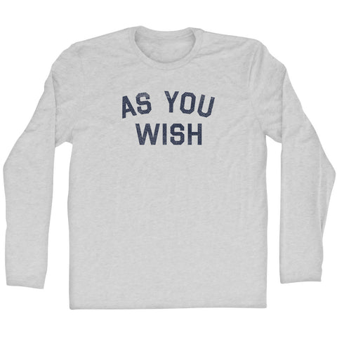 Product Story: As You Wish Adult Tri-Blend Long Sleeve T-shirtProduct Description: As You Wish Adult Tri-Blend Long Sleeve T-shirt Tri-Blend (Polyester, Rayon, Cotton) Buttery Smooth Soft Material Medium Weight Tee Soft Hand Print