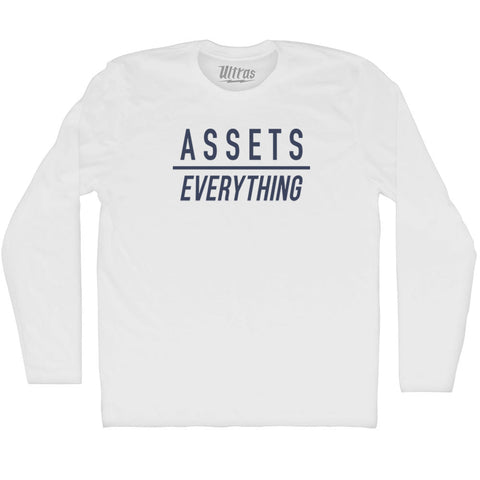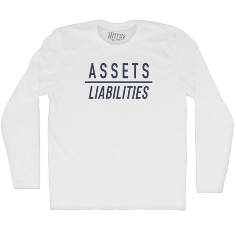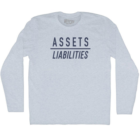 Product Story: Assets Over Liabilities Adult Cotton Long Sleeve T-shirtProduct Description: Assets Over Liabilities Adult Cotton Long Sleeve T-shirt Cotton (90% Cotton &10% Polyester) Buttery Smooth Soft Material Medium Weight Tee Soft Hand Print