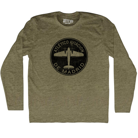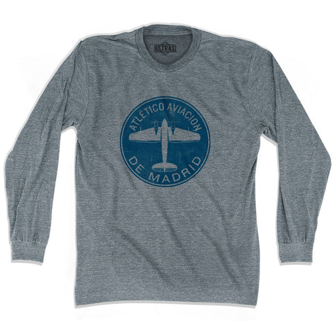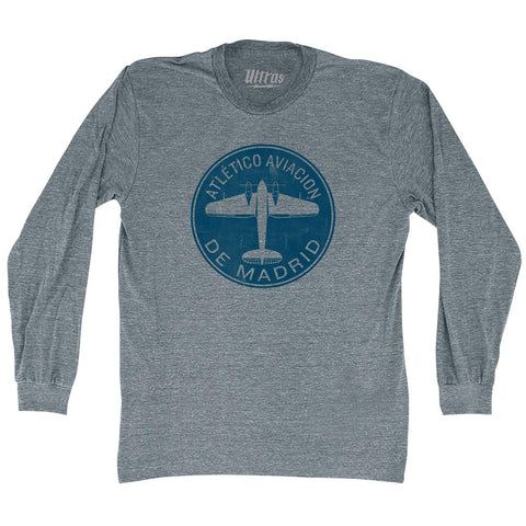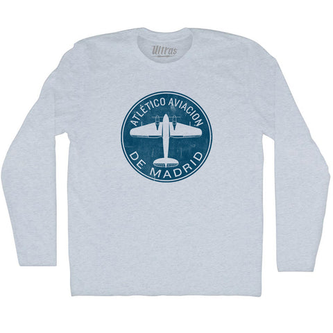 Product Story: Atletico Aviacion De Madrid Roundel Adult Tri-Blend Long Sleeve T-shirtProduct Description: Atletico Aviacion De Madrid Roundel Adult Tri-Blend Long Sleeve T-shirt Tri-Blend (Polyester, Rayon, Cotton) Buttery Smooth Soft Material Medium Weight Tee Soft Hand Print
