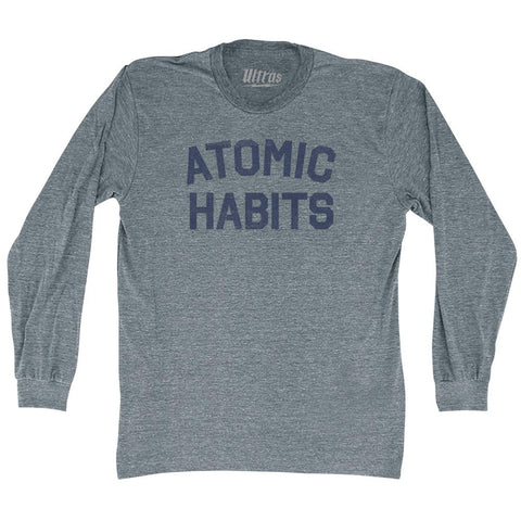 Product Story: Atomic Habits Adult Tri-Blend Long Sleeve T-shirtProduct Description: Atomic Habits Adult Tri-Blend Long Sleeve T-shirt Tri-Blend (Polyester, Rayon, Cotton) Buttery Smooth Soft Material Medium Weight Tee Soft Hand Print
