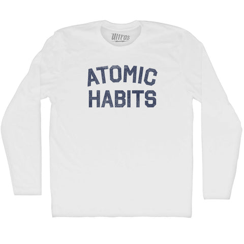 Product Story: Atomic Habits Adult Cotton Long Sleeve T-shirtProduct Description: Atomic Habits Adult Cotton Long Sleeve T-shirt Cotton Buttery Smooth Soft Material Medium Weight Tee Soft Hand Print