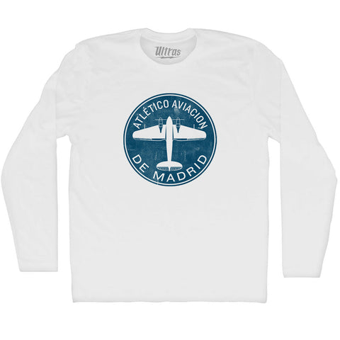 Product Story: Atletico Aviacion De Madrid Roundel Adult Cotton Long Sleeve T-shirtProduct Description: Atletico Aviacion De Madrid Roundel Adult Cotton Long Sleeve T-shirt Cotton (90% Cotton &10% Polyester) Buttery Smooth Soft Material Medium Weight Tee Soft Hand Print