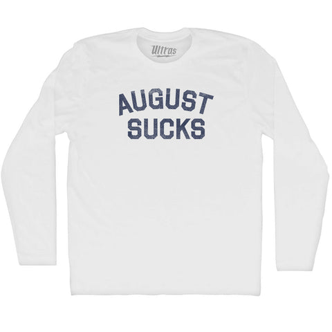 Product Story: August Sucks Adult Cotton Long Sleeve T-shirtProduct Description: August Sucks Adult Cotton Long Sleeve T-shirt Cotton Buttery Smooth Soft Material Medium Weight Tee Soft Hand Print