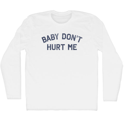 Product Story: Baby Don't Hurt Me Adult Cotton Long Sleeve T-shirtProduct Description: Baby Don't Hurt Me Adult Cotton Long Sleeve T-shirt Cotton Buttery Smooth Soft Material Medium Weight Tee Soft Hand Print