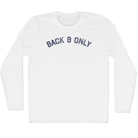 Product Story: Back 9 Only Adult Cotton Long Sleeve T-shirtProduct Description: Back 9 Only Adult Cotton Long Sleeve T-shirt Cotton (90% Cotton &10% Polyester) Buttery Smooth Soft Material Medium Weight Tee Soft Hand Print