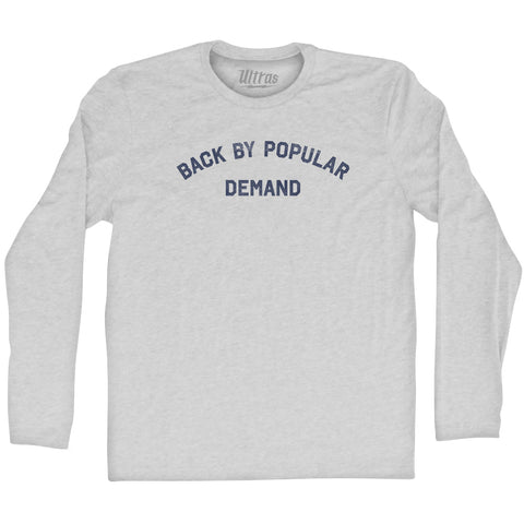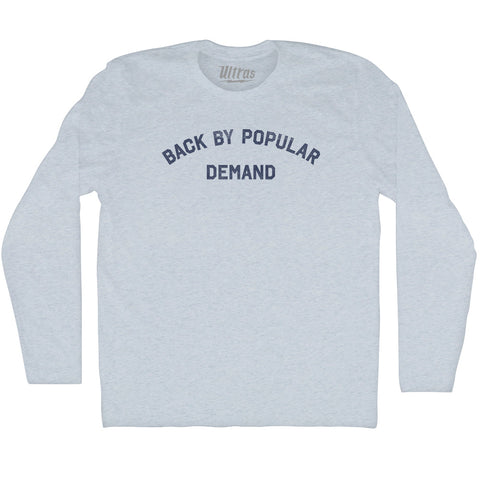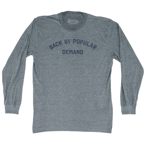 Product Story: Back By Popular Demand Adult Tri-Blend Long Sleeve T-shirtProduct Description: Back By Popular Demand Adult Tri-Blend Long Sleeve T-shirt Tri-Blend (Polyester, Rayon, Cotton) Buttery Smooth Soft Material Medium Weight Tee Soft Hand Print