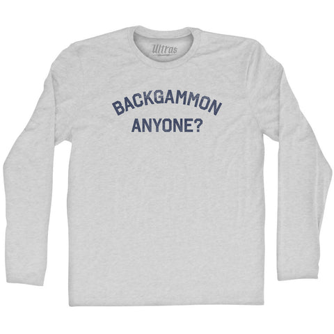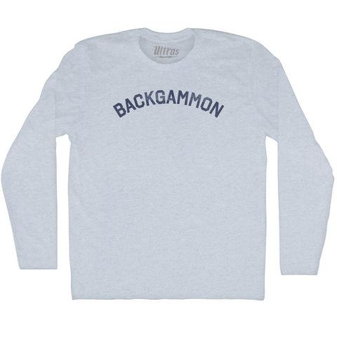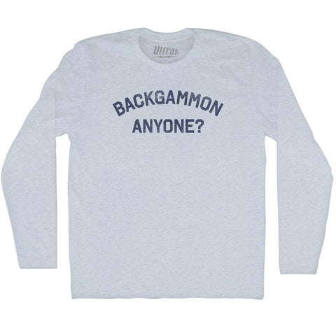 Product Story: Backgammon Anyone Adult Tri-Blend Long Sleeve T-shirtProduct Description: Backgammon Anyone Adult Tri-Blend Long Sleeve T-shirt Tri-Blend (Polyester, Rayon, Cotton) Buttery Smooth Soft Material Medium Weight Tee Soft Hand Print