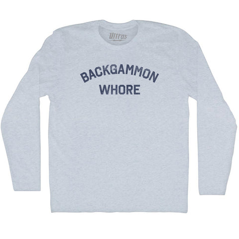 Product Story: Backgammon Whore Adult Tri-Blend Long Sleeve T-shirtProduct Description: Backgammon Whore Adult Tri-Blend Long Sleeve T-shirt Tri-Blend (Polyester, Rayon, Cotton) Buttery Smooth Soft Material Medium Weight Tee Soft Hand Print