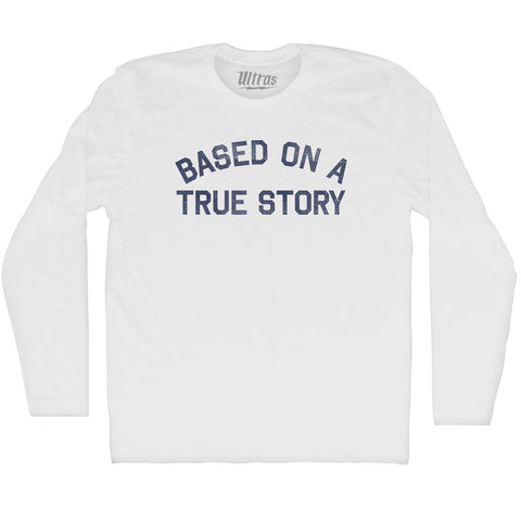 Product Story: Based On A True Story Adult Cotton Long Sleeve T-shirtProduct Description: Based On A True Story Adult Cotton Long Sleeve T-shirt Cotton Buttery Smooth Soft Material Medium Weight Tee Soft Hand Print