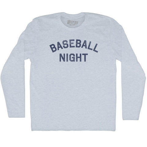Product Story: Baseball Night Adult Tri-Blend Long Sleeve T-shirtProduct Description: Baseball Night Adult Tri-Blend Long Sleeve T-shirt Tri-Blend (Polyester, Rayon, Cotton) Buttery Smooth Soft Material Medium Weight Tee Soft Hand Print