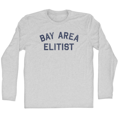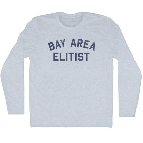 Product Story: Bay Area Elitist Adult Cotton Long Sleeve T-shirtProduct Description: Bay Area Elitist Adult Cotton Long Sleeve T-shirt Cotton Buttery Smooth Soft Material Medium Weight Tee Soft Hand Print