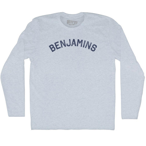 Product Story: Benjamins Adult Tri-Blend Long Sleeve T-shirtProduct Description: Benjamins Adult Tri-Blend Long Sleeve T-shirt Tri-Blend (Polyester, Rayon, Cotton) Buttery Smooth Soft Material Medium Weight Tee Soft Hand Print