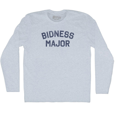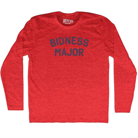 Product Story: Bidness Major Adult Tri-Blend Long Sleeve T-shirtProduct Description: Bidness Major Adult Tri-Blend Long Sleeve T-shirt Tri-Blend (Polyester, Rayon, Cotton) Buttery Smooth Soft Material Medium Weight Tee Soft Hand Print
