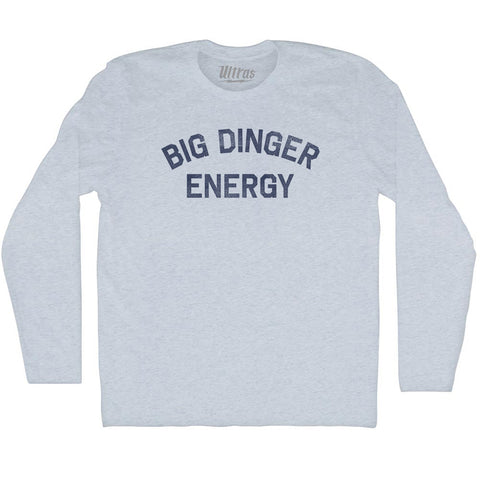 Product Story: Big Dinger Energy Adult Tri-Blend Long Sleeve T-shirtProduct Description: Big Dinger Energy Adult Tri-Blend Long Sleeve T-shirt Tri-Blend (Polyester, Rayon, Cotton) Buttery Smooth Soft Material Medium Weight Tee Soft Hand Print