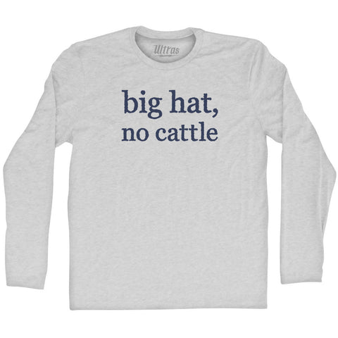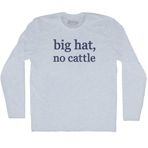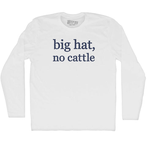 Product Story: Big Hat, No Cattle Rage Font Adult Cotton Long Sleeve T-shirtProduct Description: Big Hat, No Cattle Rage Font Adult Cotton Long Sleeve T-shirt Cotton (90% Cotton &10% Polyester) Buttery Smooth Soft Material Medium Weight Tee Soft Hand Print