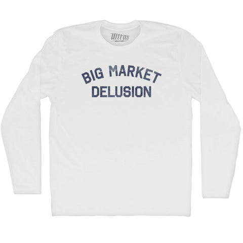 Product Story: Big Market Delusion Adult Cotton Long Sleeve T-shirtProduct Description: Big Market Delusion Adult Cotton Long Sleeve T-shirt Cotton Buttery Smooth Soft Material Medium Weight Tee Soft Hand Print