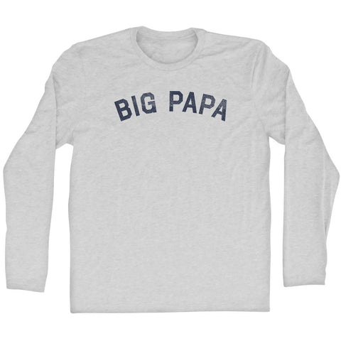 Product Story: Big Papa Adult Tri-Blend Long Sleeve T-shirtProduct Description: Big Papa Adult Tri-Blend Long Sleeve T-shirt Tri-Blend (Polyester, Rayon, Cotton) Buttery Smooth Soft Material Medium Weight Tee Soft Hand Print