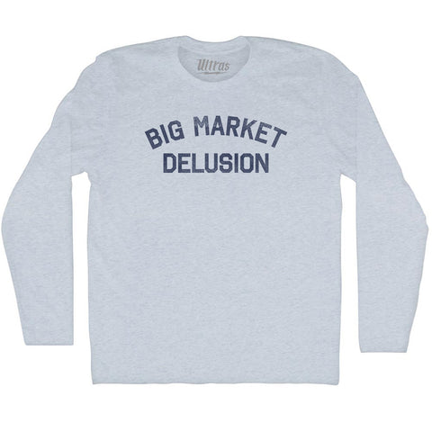 Product Story: Big Market Delusion Adult Tri-Blend Long Sleeve T-shirtProduct Description: Big Market Delusion Adult Tri-Blend Long Sleeve T-shirt Tri-Blend (Polyester, Rayon, Cotton) Buttery Smooth Soft Material Medium Weight Tee Soft Hand Print