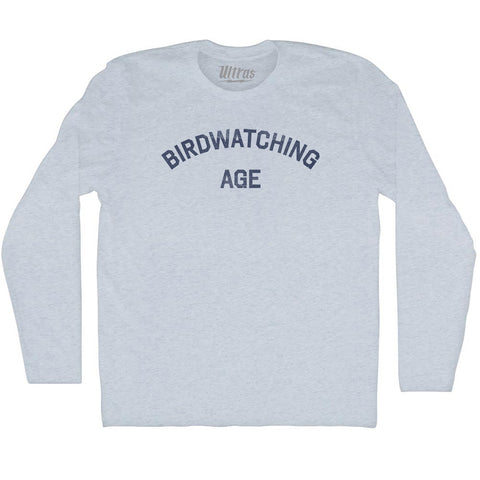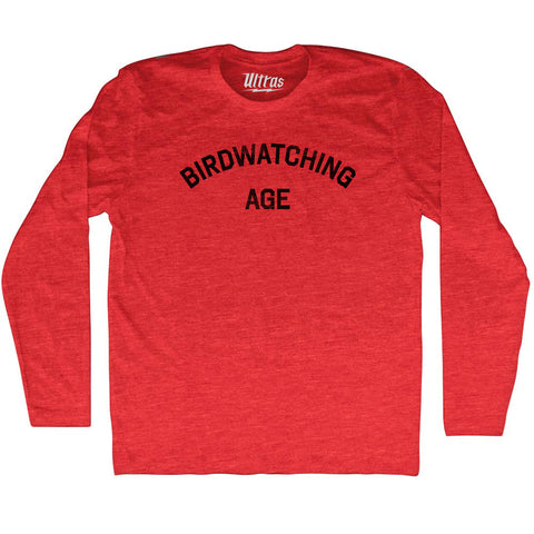 Product Story: Birdwatching Age Adult Tri-Blend Long Sleeve T-shirtProduct Description: Birdwatching Age Adult Tri-Blend Long Sleeve T-shirt Tri-Blend (Polyester, Rayon, Cotton) Buttery Smooth Soft Material Medium Weight Tee Soft Hand Print