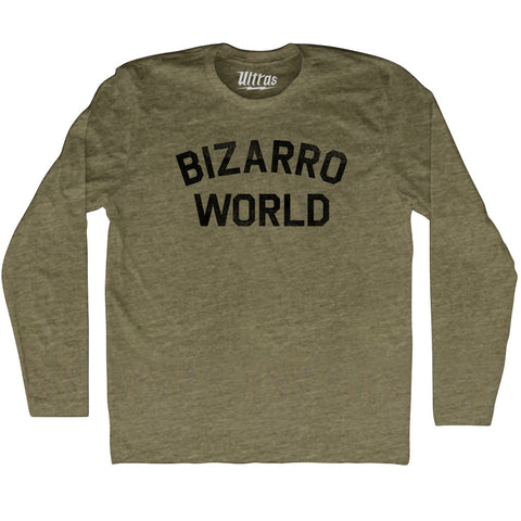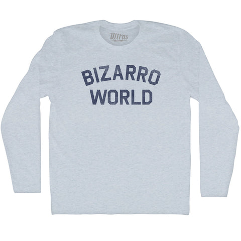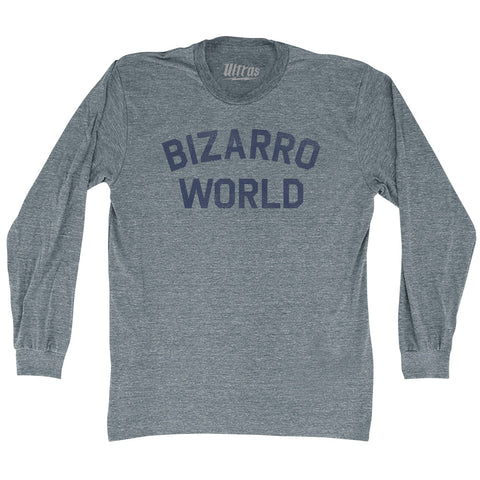 Product Story: Bizarro World Adult Tri-Blend Long Sleeve T-shirtProduct Description: Bizarro World Adult Tri-Blend Long Sleeve T-shirt Tri-Blend (Polyester, Rayon, Cotton) Buttery Smooth Soft Material Medium Weight Tee Soft Hand Print