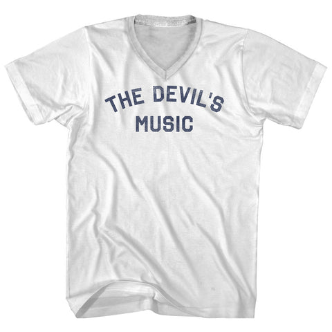 Product Story: The Devil's Music Adult Cotton V-neck T-shirtProduct Description: The Devil's Music Adult Cotton V-neck T-shirt Cotton Buttery Smooth Soft Material Medium Weight Tee Soft Hand Print