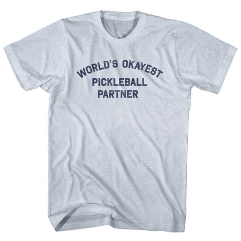 Product Story: World's Okayest Pickleball Partner Adult Cotton T-shirtProduct Description: World's Okayest Pickleball Partner Adult Cotton T-shirt Cotton Buttery Smooth Soft Material Medium Weight Tee Soft Hand Print