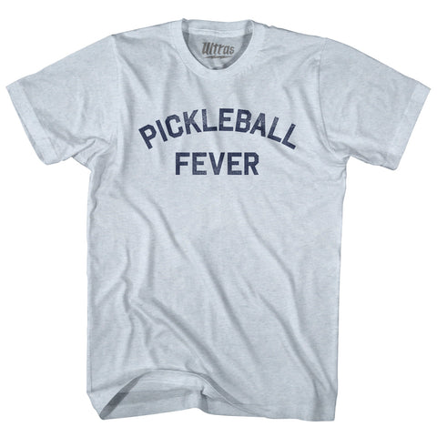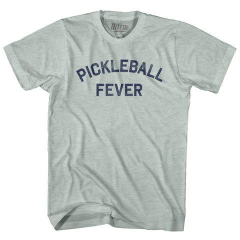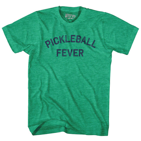 Product Story: Pickleball Fever Adult Tri-Blend T-shirtProduct Description: Pickleball Fever Adult Tri-Blend T-shirt Tri-Blend (Polyester, Rayon, Cotton) Buttery Smooth Soft Material Medium Weight Tee Soft Hand Print