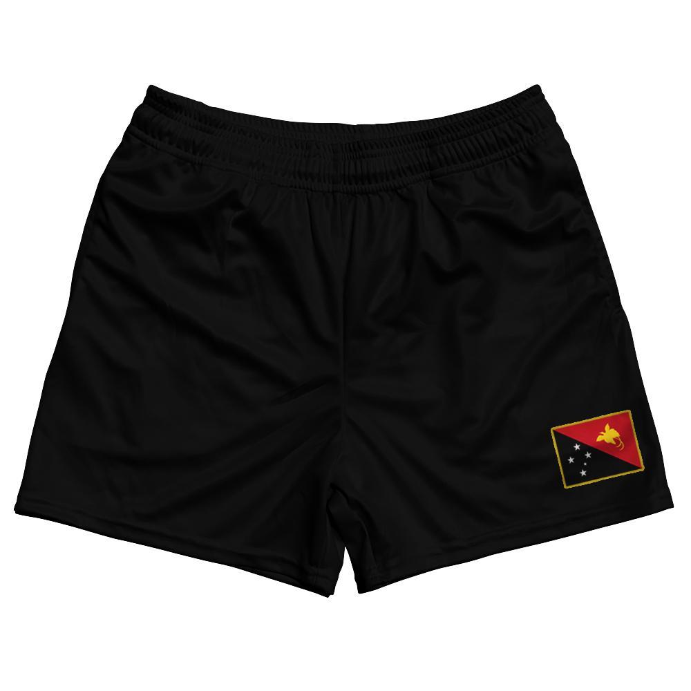 Papua New Guinea Country Heritage Flag Rugby Gym Short 5 Inch Inseam With Pockets Made In USA