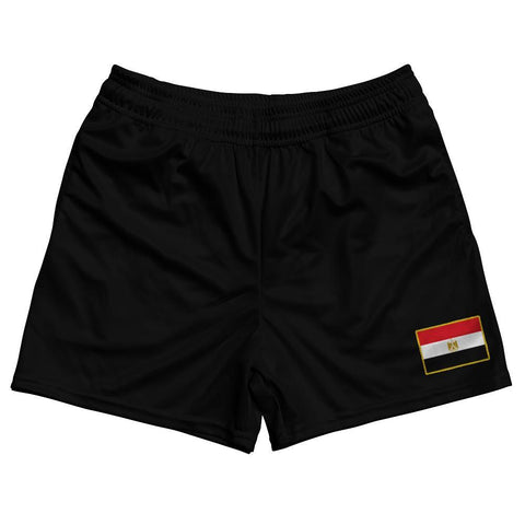 Product Story: Egypt Country Heritage Flag Rugby Gym Short 5 Inch Inseam With Pockets Made In USA Product Description: Egypt Country Heritage Flag Rugby Gym Short 5 Inch Inseam With Pockets Made In USA Polyester Sublimated Vibrant Print Premium Micro Fiber Side Pockets 4.5 Inch Inseam Elastic Drawstring Made in USA