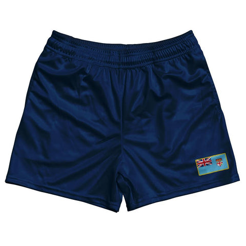 Product Story: Fiji Country Heritage Flag Rugby Gym Short 5 Inch Inseam With Pockets Made In USA Product Description: Fiji Country Heritage Flag Rugby Gym Short 5 Inch Inseam With Pockets Made In USA Polyester Sublimated Vibrant Print Premium Micro Fiber Side Pockets 4.5 Inch Inseam Elastic Drawstring Made in USA