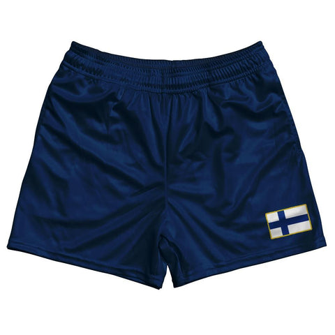Product Story: Finland Country Heritage Flag Rugby Gym Short 5 Inch Inseam With Pockets Made In USA Product Description: Finland Country Heritage Flag Rugby Gym Short 5 Inch Inseam With Pockets Made In USA Polyester Sublimated Vibrant Print Premium Micro Fiber Side Pockets 4.5 Inch Inseam Elastic Drawstring Made in USA