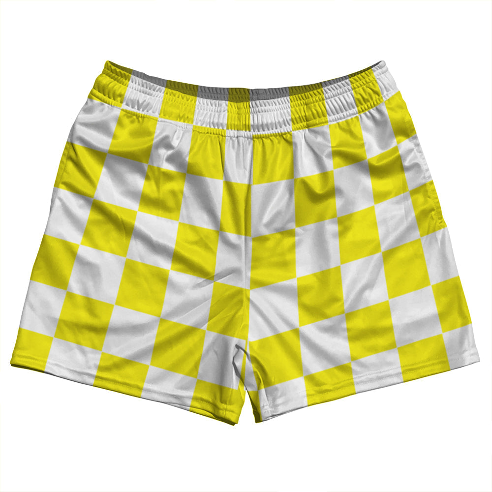 Checkerboard 2.5 Inches Yellow Bright and White Rugby Shorts Made In USA