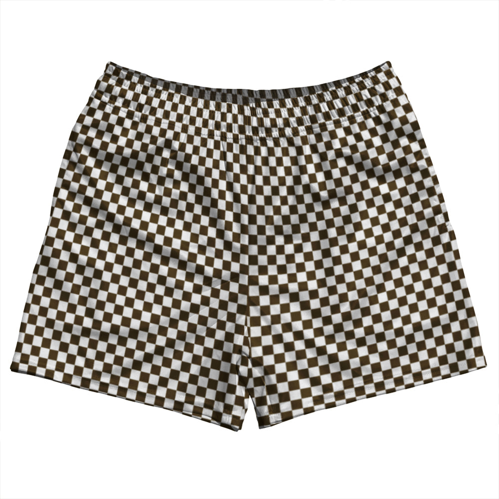 - Checkerboard Half Inch Brown Dark and White Rugby Shorts Made In USA
