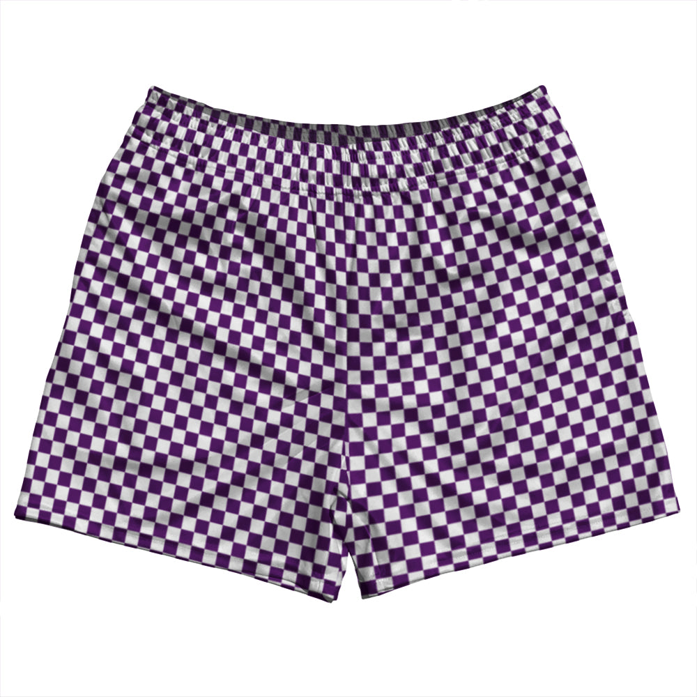 - Checkerboard Half Inch Purple Medium and White Rugby Shorts Made In USA