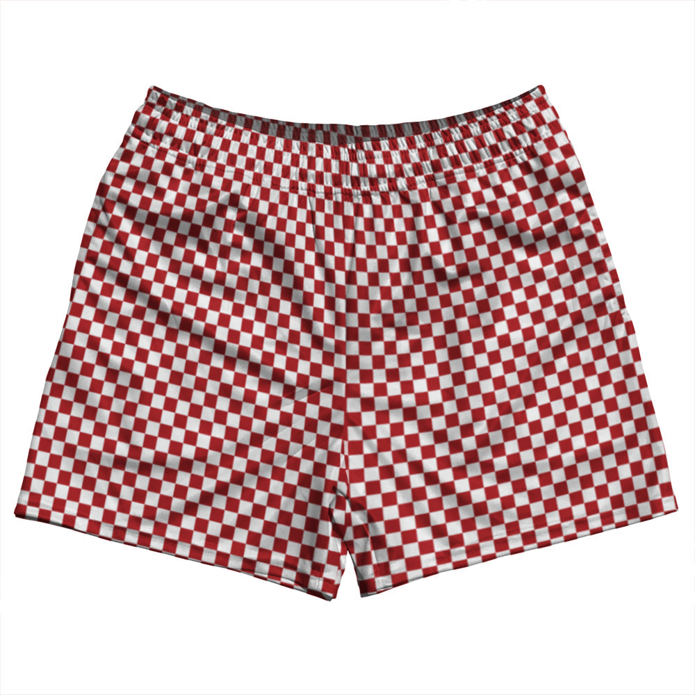 - Checkerboard Half Inch Red Dark and White Rugby Shorts Made In USA