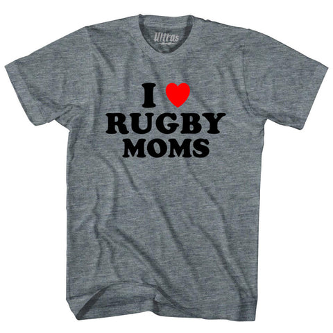 Product Story: I Love Rugby Moms Adult Tri-Blend T-shirtProduct Description: I Love Rugby Moms Adult Tri-Blend T-shirt Tri-Blend (Polyester, Rayon, Cotton) Buttery Smooth Soft Material Medium Weight Tee Soft Hand Print