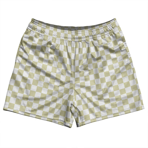 Product Story: Checkerboard 1 Inch Vegas Gold and White Rugby Shorts Made In USAProduct Description: Checkerboard 1 Inch Vegas Gold and White Rugby Shorts Made In USA Rep your, state, country or tribe in these fun Ruckus Rugby shorts. Rugby Shorts Polyester Sublimated Vibrant Print Premium Micro Fiber Side Pockets 4.5 Inch Inseam Elastic Drawstring Made In USA