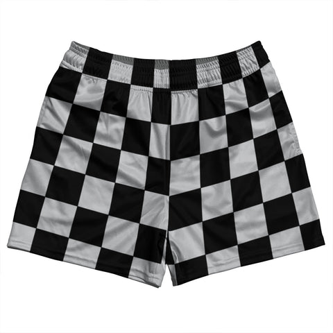 Product Story: Checkerboard 2.5 Inches Black and Grey Medium Rugby Shorts Made In USAProduct Description: Checkerboard 2.5 Inches Black and Grey Medium Rugby Shorts Made In USA Rep your, state, country or tribe in these fun Ruckus Rugby shorts. Rugby Shorts Polyester Sublimated Vibrant Print Premium Micro Fiber Side Pockets 4.5 Inch Inseam Elastic Drawstring Made In USA